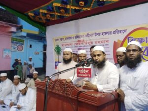 শনিবার ২০ সেপ্টেম্বর বিকেলে নারায়ণগঞ্জ সদর উপজেলার ফতুল্লার কাশিপুর ভোলাইল আলীপাড়া মসজিদ সংলগ্ন মাঠে জমিয়তে উলামায়ে ইসলাম বাংলাদেশ কাশিপুর ইউনিয়নের উদ্যোগে এ বিক্ষোভ সমাবেশ অনুষ্ঠিত হয়েছে।