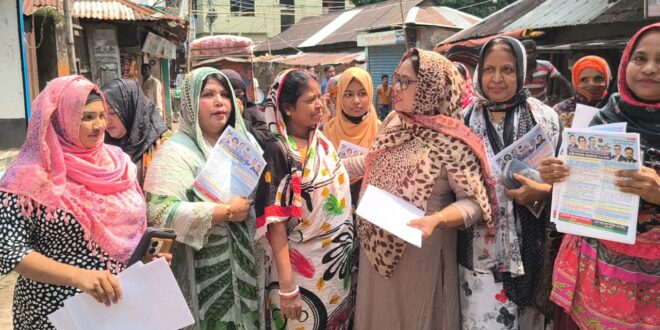 রবিবার ১২ অক্টোবর সকাল ১১ টায় নারায়ণগঞ্জ সিটি কর্পোরেশনের ১৪নং ওয়ার্ডস্থ নন্দীপাড়া এলাকায় নারায়ণগঞ্জ মহানগর মহিলা দলের আয়োজনে এ উঠান বৈঠক ও লিফলেট বিতরণ কর্মসূচির অনুষ্ঠিত হয়েছে।