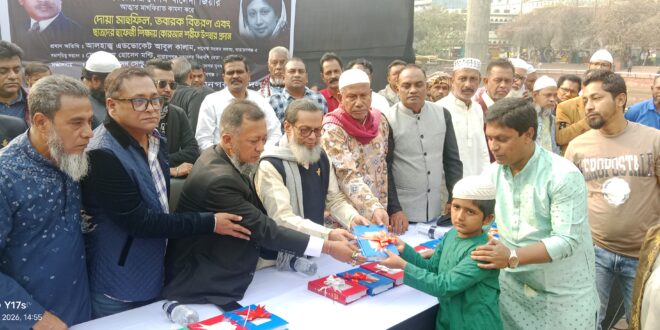 নিউজ ব্যাংক ২৪. নেট : মহান স্বাধীনতার ঘোষক শহীদ রাষ্ট্রপতি জিয়াউর রহমানের ৯০তম জন্মবার্ষিকী ও আপোষহীন নেত্রী প্রয়াত বেগম খালেদা জিয়ার আত্মার মাগফেরাত কামনায় মহানগর যুব দলের আয়োজনে দোয়া মাহফিল ও ছাত্রদের হাফেজী শিক্ষায় কোরআন শরীফ উপহার প্রদান অনুষ্ঠান অনুষ্ঠিত হয়েছে।