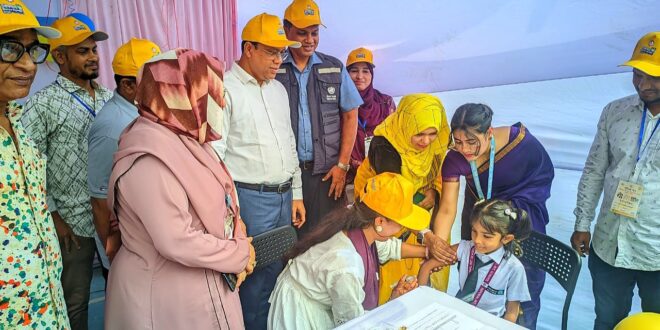 নিউজ ব্যাংক ২৪. নেট : নারায়ণগঞ্জ সিটি কর্পোরেশনের টাইফয়েড টিকা প্রদান কার্যক্রম শুরু হয়েছে। সিটি কর্পোরেশন এলাকায় এ বছর ২ লক্ষাধিক শিশুকে এ টিকা দেয়ার লক্ষ্যমাত্রা ধরা হয়েছে।