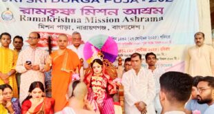 বুধবার ১ অক্টোবর সন্ধ্যা সাড়ে ৭টায় নারায়ণগঞ্জ শহরের রামকৃষ্ণ মিশন আশ্রম ও আমলাপাড়া সার্বজনীন পূজা মণ্ডপ ঘুরে দেখেন।