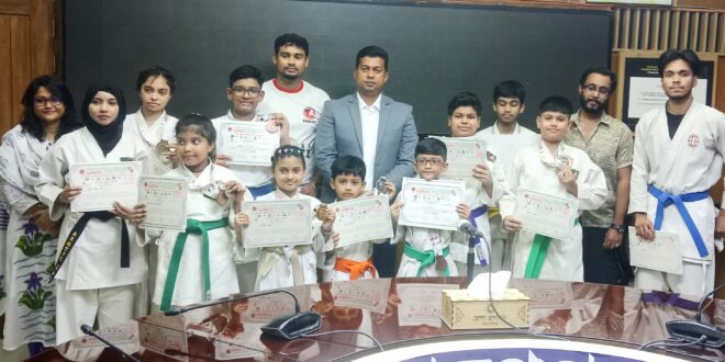 জানাগেছে, নগরীর আল্লামা ইকবাল রোডে অবস্থিত ‘বাংলাদেশ সেলফ ডিফেন্স এন্ড স্পোর্টস কারাতে একাডেমি’ থেকে এ কারাতেকারা সম্প্রতি ঐ আর্ন্তজাতিক প্রতিযোগীতায় অংশগ্রহণ করে। প্রতিযোগীতায় নারায়ণগঞ্জ থেকে ১০ জন মোট ২টা গোল্ড, ৩টা সিলভার, ১১টা ব্রোঞ্জ পদক অর্জন করে বিজয়ী হয়।