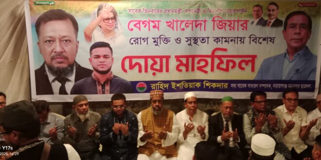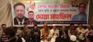 নিউজ ব্যাংক ২৪. নেট : বাংলাদেশ জাতীয়তাবাদী দল বিএনপির চেয়ারপার্সন ও সাবেক প্রধানমন্ত্রী দেশনেত্রী বেগম খালেদা জিয়ার সুস্থতা কামনায় মিলাদ ও দোয়া মাহফিল অনুষ্ঠিত হয়।