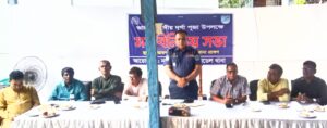 সভাপতির বক্তব্যে সদর মডেল থানার অফিসার ইনচার্জ মোহাম্মদ নাছির আহমদ বলেন, বিভিন্ন পূজা মণ্ডপের আইন শৃঙ্খলার সার্বিক পরিস্থিতি মোকাবেলায় পুলিশ ও পূজা উৎযাপন কমিটির নেতৃবৃন্দের মিলেমিশে কাজ করবেন। আমরা চাই সকলের সহযোগিতায় এবছর নির্ভিগ্নে ও শান্তিপূর্ণ ভাবে পূজা উৎযাপনের লক্ষে সকলের ঐকান্তিক প্রচেষ্টা। আপনারা প্রতিটি পূজা মণ্ডপে অবশ্যই সিসিটিভি ক্যামেরা স্থাপন করবেন। প্রতিটি পূজা মণ্ডপের স্বেচ্ছাসেবকদের তালিকা তৈরি করে থানায় জমা দিবেন। পূজা মণ্ডপের নিরাপত্তার জন্য পুলিশ বিশেষ অভিযান ও মনিটরিং থাকবে, পাশাপাশি সেনাবাহিনী ও র্যাবও মনিটরিং করবে। এলাকা ভিত্তিক পুলিশের এসআইদের দায়িত্ব দেয়া হয়েছে।