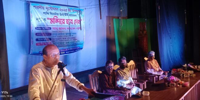 নিউজ ব্যাংক ২৪. নেট : সার্বজনীন শারদীয় দূর্গোৎসব ২০২৫ ইং উপলক্ষে শাম্মি থিয়েটার ৬২তম প্রযোজনায় নাটক “মন্দিরে হবে দেখা” মঞ্চায়ন উপলক্ষ্যে আলোচনা অনুষ্ঠান অনুষ্ঠিত হয়।